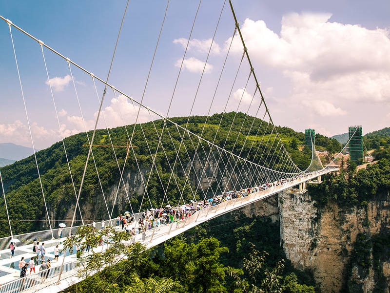 Cầu kính Thiên Vân Độ là cầu kính cao nhất và dài nhất trên thế giới hiện nay. Cây cầu kính Trung Quốc này nối hai đỉnh núi trong công viên Trương Gia Giới ở độ cao hơn 300m. Cùng với chiều dài 430m đó cũng giúp cây cầu lập kỷ lục thế giới. Cũng không phải ai có đủ dũng khí đứng trên cây cầu này khi bạn hoàn toàn có thể nhìn thấy khu vực sâu thăm quan ngay dưới chân.