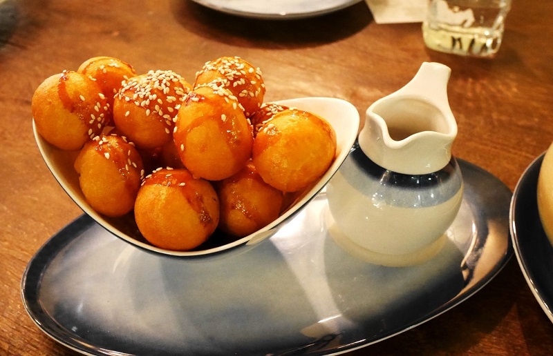 Món bánh rán Luqaimat rất rẻ và thơm ngon, sẽ thực sự lãng phí nếu quý khách không nếm thử đặc sản này trong chuyến đi du lịch Dubai. Bánh được làm từ bột mỳ, nghệ tây, bơ, sữa, đường bột, quả thảo, vừng và một số nguyên liệu truyền thống khác, vỏ bánh giòn tan khiến khách du lịch Dubai cảm thấy thích thú.