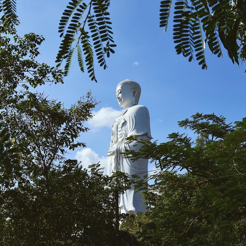 Chùa Long Sơn hay còn gọi là Chùa Phật trắng, xây dựng cách đây hơn trăm năm, được xem là điểm đến tâm linh nổi tiếng bậc nhất Khánh Hòa. Ngôi chùa luôn nghi ngút khói hương với hàng trăm người ra vào lễ Phật nhưng vẫn giữ một vẻ trầm mặc, thanh tịnh khiến người ta cảm thấy nhẹ nhàng. Hình ảnh nổi bật nhất ở đây là tượng Phật Thích Ca màu trắng, cao 24 m, đường kính đài sen rộng 10 m, trong tư thế tọa thiền uy nghi giữa bầu trời.