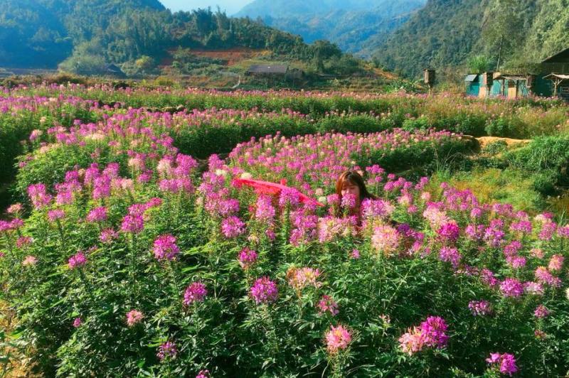 Điểm nổi bật của bản Cát Cát là đến đây vào bất kỳ tháng nào trong năm, du khách cũng được hòa mình vào những cánh đồng hoa ngút ngàn, trải đều tăm tắp như hoa bất tử, hoa hướng dương, hoa hồng ri, hoa cánh bướm… xen lẫn màu xanh của ruộng bậc thang tạo nên bức tranh thiên nhiên thơ mộng, lãng mạn.