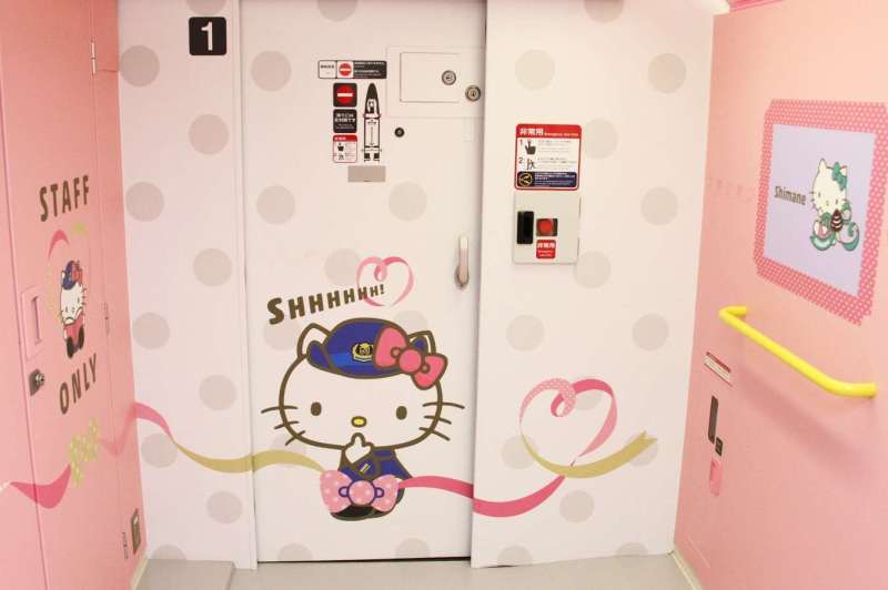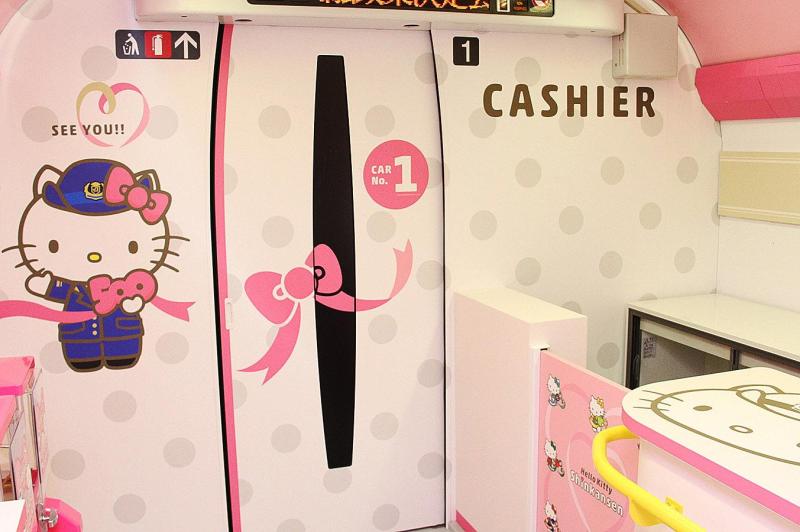 Chiều lòng các hành khách sống ảo, đoàn tàu còn có hẳn một khu vực photo booth để chụp ảnh, với một hình nộm Hello Kitty khá lớn, được mặc đồng phục của nhân viên trên tàu. Thay vì sử dụng chuông báo tới trạm theo kiểu truyền thống, chuyến tàu này sử dụng âm báo là nhạc phim Hello Kitty mỗi khi tới ga.