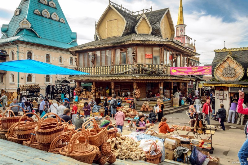 Nằm ngay trong lòng Moscow, chợ Izmailovsky như một thế giới thu nhỏ, được xây dựng theo lối kiến trúc tòa tháp điển hình của Nga. Nổi tiếng với lối đi “mê cung”, khu chợ trời này chuyên bán các món đồ lưu niệm từ thời Liên Xô cũ đến các sản phẩm dệt lụa vùng Uzbek, mũ lông, da thuộc, máy ảnh cổ điển và búp bê Matryoshka đặc trưng của xứ bạch dương.